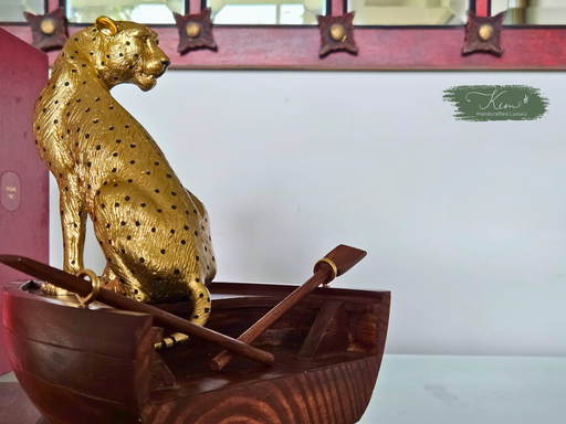 Majestic and tender all at once, Feline Ferry tells a story of contrast — a vibrant leopard, regal and powerful, seated quietly in a wooden bo...