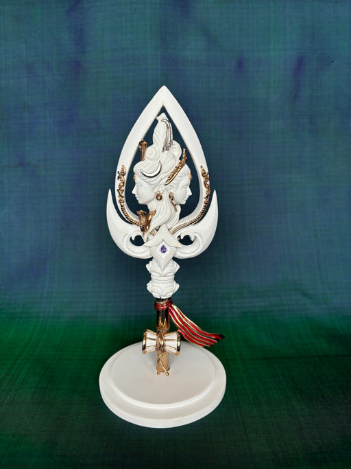 A profound representation of cosmic unity and divine balance, the Shiva Parvati Arrowhead idol presents Lord Shiva and Goddess Parvati sculpted bac...